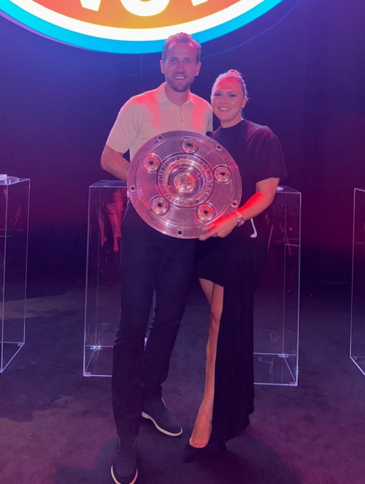 庆祝不停歇!妻子社媒晒手捧沙拉盘与凯恩合照:德甲冠军